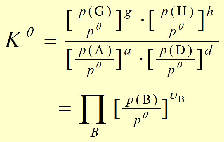 定义: 对于一可逆反应,在一定条件下,当正、逆反应速率相等时,反应体系中各物质浓度或分压不再随时间改变,这种状态称为化学平衡。