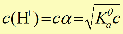 3. 多元弱酸 Ka1ө >>Ka2ө >>Ka3ө ,c(H+) 主要决定于第一步解离, c(H+)计算同于一元弱酸.