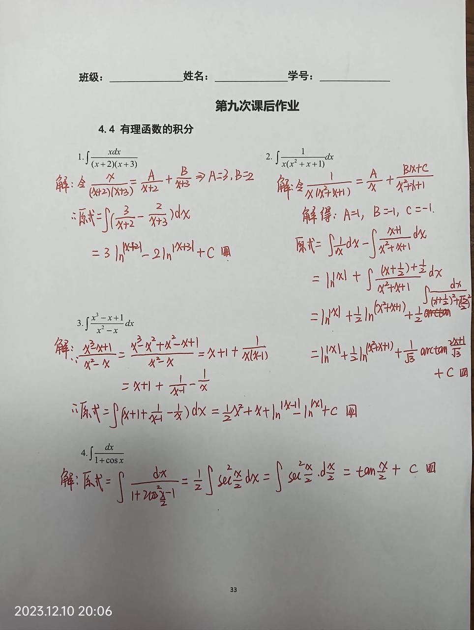 第2题第2、、3、4个等号后面的“+”改为“—”。